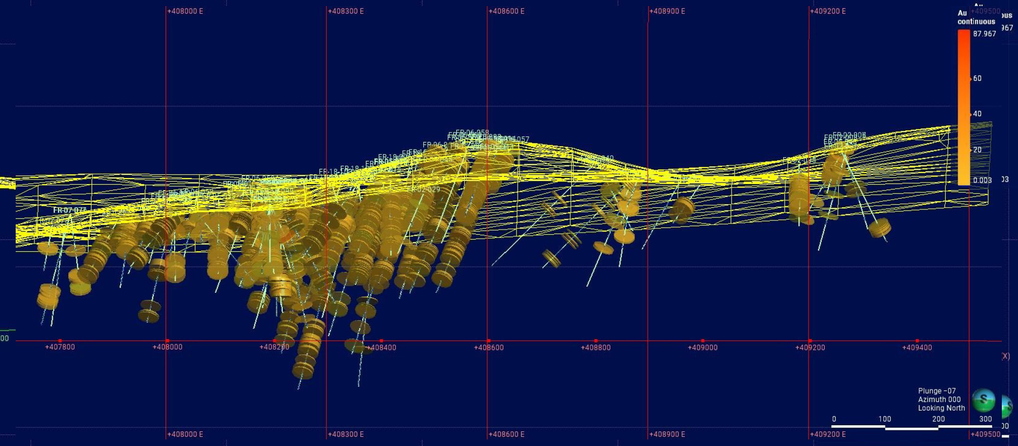 Historical exploration and development planning at Fran focused on delineation of mid-high grade veins with an eye to underground mining of these veins. Very limited focus was placed on bulk tonnage and disseminated gold, although discussed in reports from 2006, no follow-up appears to have occurred. North Bay’s recent ongoing focus has been the development of mid-high grade surface material as feedstock for its Bishop Gold Mill. This in turn has led to a re-evaluation of the project potential resulting in what is currently a dual focus with high grade surface material going to the Company’s mill and further evaluation of the larger potential of the mass tonnage gold deposit. Data indicates substantial expansion potential at depth beyond 300m (984 feet) and extensions of the disseminated gold zones to the East and North-East where copper grades begin to rise. Drilling was stopped in these directions due to the loss of the mid-high grade veins that were the focus of historical exploration and these areas remain largely unexplored.